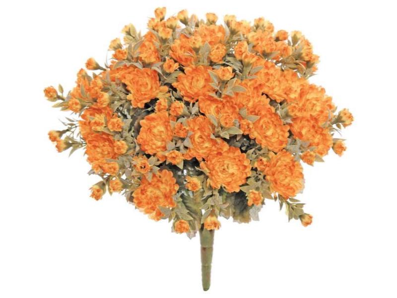 Bring the rich warmth of autumn into your space with this vibrant Mini Mum Bush, featuring 2.25" blooms in a beautiful blend of gold and rust hues. At 15 inches tall, it's the perfect size for seasonal centerpieces, floral arrangements, porch pots, or wreath accents.