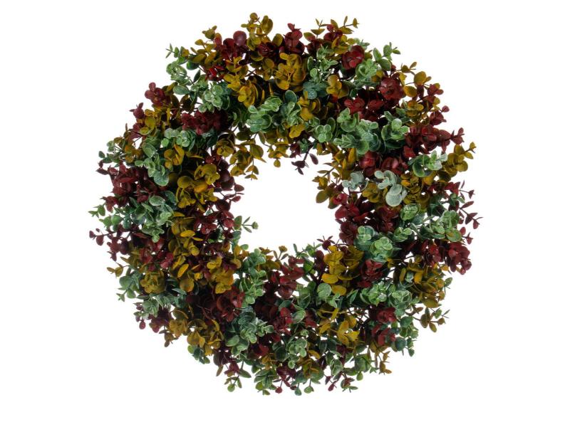 Bring a fresh and festive touch to your home with this 18" Red and Green Spiral Artificial Eucalyptus Wreath. Featuring lush eucalyptus leaves artistically arranged in a spiral pattern, accented with vibrant red and green elements, this wreath is perfect for adding seasonal cheer to any door, wall, or mantel.