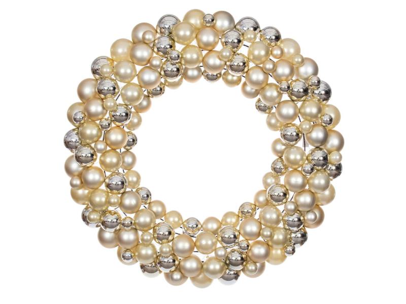 Add bold holiday flair to your décor with this striking 24-inch red ornament wreath. Featuring 93 ornaments in a mix of sizes and finishes, it delivers texture, shine, and festive charm in a classic monochromatic palette.